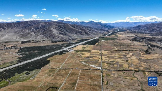 西藏日喀則江孜段富饒的農(nóng)田(9月19日攝,無人機照片)。者 晉美多吉 攝