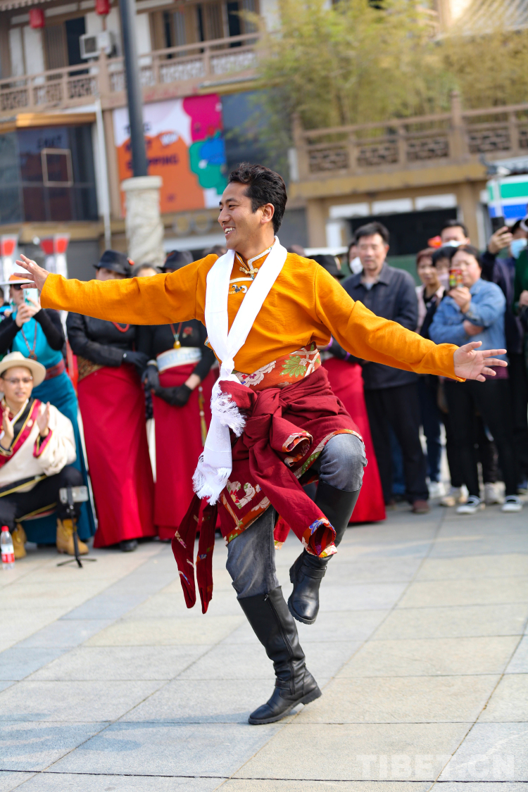 圖為大唐西市活動(dòng)現(xiàn)場 多杰尼瑪正在領(lǐng)舞 攝影:呂靜