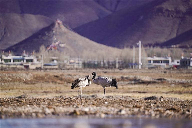黑頸鶴是國家一級保護動物,在藏語中稱為“沖沖”。主要棲息在海拔2500米至5000米的高原、草甸、沼澤地帶。拉薩北部的林周縣平均海拔約4200米,是黑頸鶴的主要越冬地之一。最近這段時間,對拉薩市林周縣野保員們來說,一邊要忙自家的農活,一邊還要巡查候鳥情況。“已經有一小部分飛走了,估計再過半個月都會陸續(xù)飛走?!?月23日上午,野保員旦增告訴記者,在虎頭山水庫和卡孜水庫越冬的候鳥有一部分已經飛走了。野保員口中的“飛走”便是遷徙,遷徙是候鳥的本能,一年一年,跟隨時間的召喚,完成兩次遷徙:繁殖和越冬。