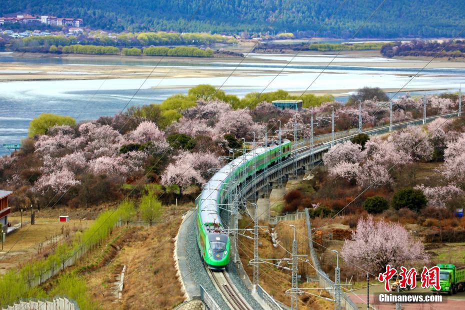 近日,中國(guó)鐵路青藏集團(tuán)有限公司介紹,3月下旬至4月,拉林鐵路沿線綿延的野生桃花林盛開,藍(lán)天、白云、桃花、雪山、高原復(fù)興號(hào)動(dòng)車等相互交織,形成了一幅幅美不勝收的畫面。[詳細(xì)]