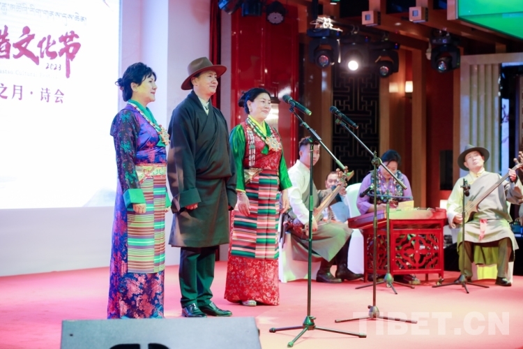 本次詩會通過朗誦倉央嘉措代表作和其他經(jīng)典文學(xué)、演唱富有民族特色的音樂作品、西藏國家級非物質(zhì)文化遺產(chǎn)“藏戲”“朗瑪堆諧”等歌舞表演形式,重溫動人的詩歌,展示以倉央嘉措文化為代表的中國傳統(tǒng)文化的魅力。在“相約吉祥之月”詩會上,著名主持人、朗誦家任志宏,朗誦藝術(shù)家徐濤,配音藝術(shù)家、著名主持人“金龜子”劉純燕等文化名人朗讀了《在那東山頂上》《心上之人》《愛在心中》《杜鵑》《無心木船》等詩歌,以飽含情感的配樂朗誦,帶領(lǐng)現(xiàn)場嘉賓走進(jìn)倉央嘉措的世界。