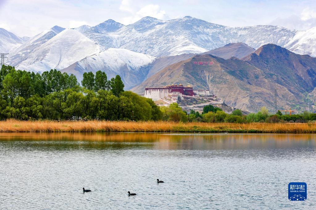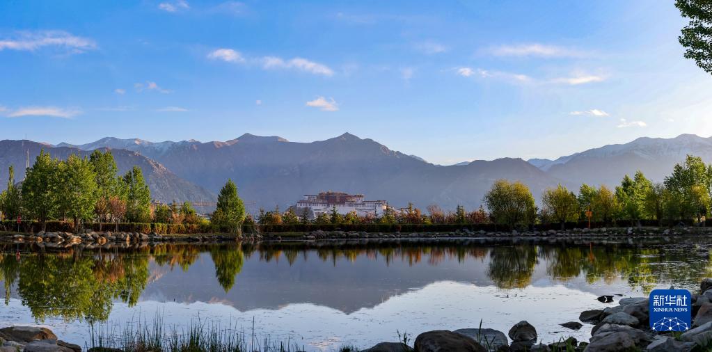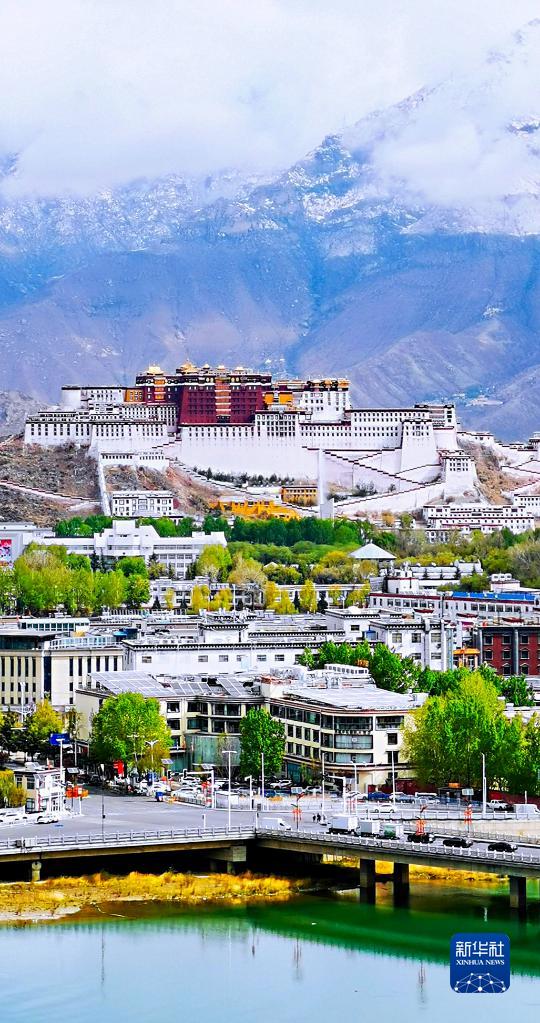 這是在拉魯濕地拍攝的拉薩風(fēng)光,蔥蘢的樹(shù)木點(diǎn)綴在城市中,與山色相映成趣(5月12日攝)。新華社記者 姜帆 攝