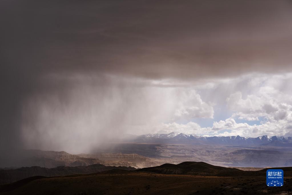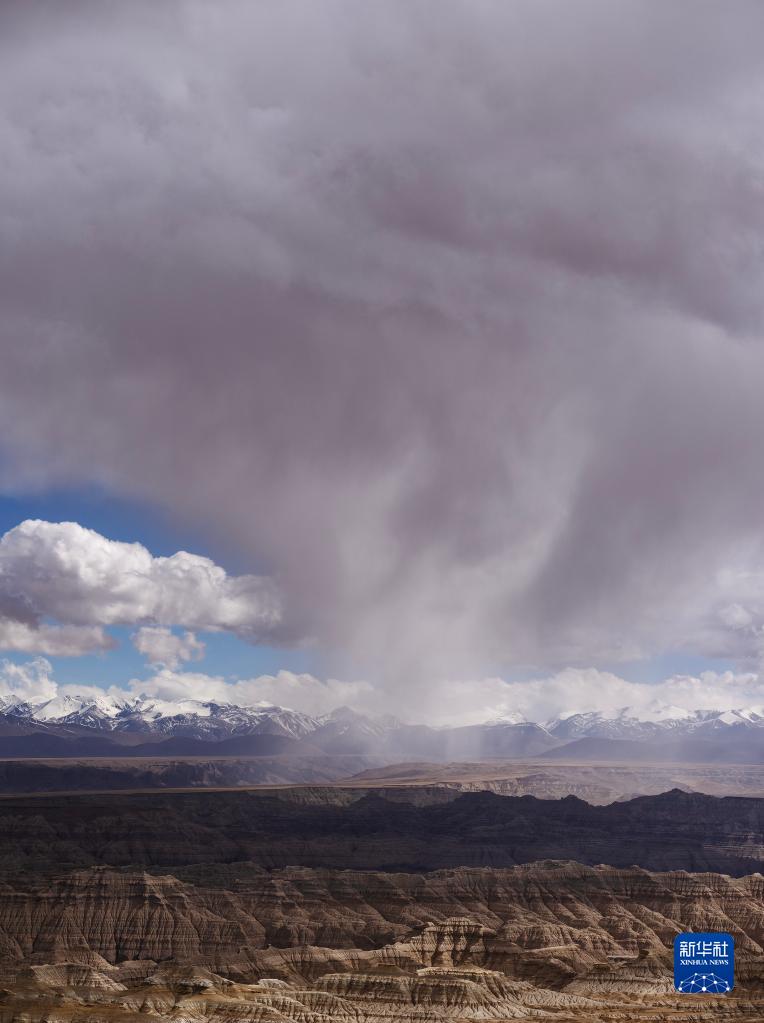 一片雨云飄到札達土林上空(5月25日攝)。新華社記者 費茂華 攝