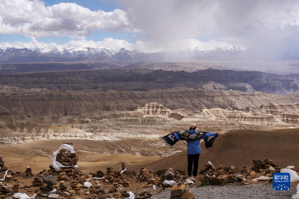 游客在札達土林留影(5月25日攝)。新華社記者 費茂華 攝