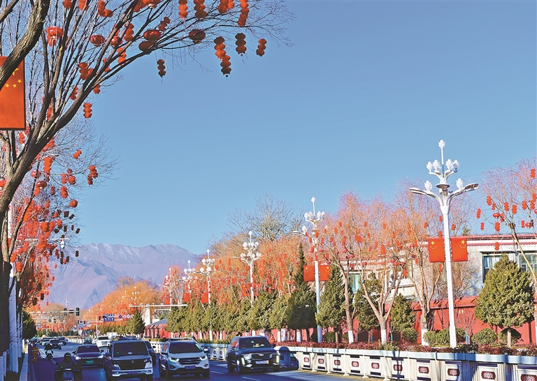 春節(jié)、藏歷新年臨近,拉薩街頭年味漸濃。近日,在拉薩主城區(qū)多條街道,市政工人正忙著懸掛燈籠。放眼望去,鮮艷的燈籠如累累果實般點綴著冬日街景,在高原的陽光照耀下顯得格外喜慶。