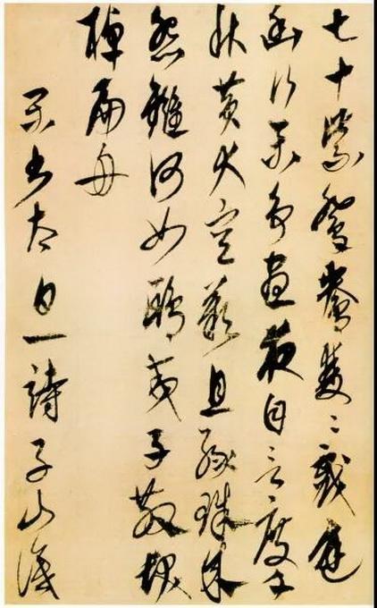 其草書(shū)豎幅《李白古風(fēng)詩(shī)卷》,縱35.0cm,橫63.8cm,現(xiàn)藏日本東京國(guó)立博物館。書(shū)風(fēng)勁健清新,善以懸腕作書(shū),行筆爽利干脆,結(jié)體縱長(zhǎng),流暢而不浮滑,但是往往在最后一筆用力一挑或一頓,難免顯得有些刻露。在當(dāng)時(shí)世趨趙孟頫書(shū)風(fēng)的情況下,能走出自己的道路,作為杰出的少數(shù)民族書(shū)法家特立于書(shū)壇。