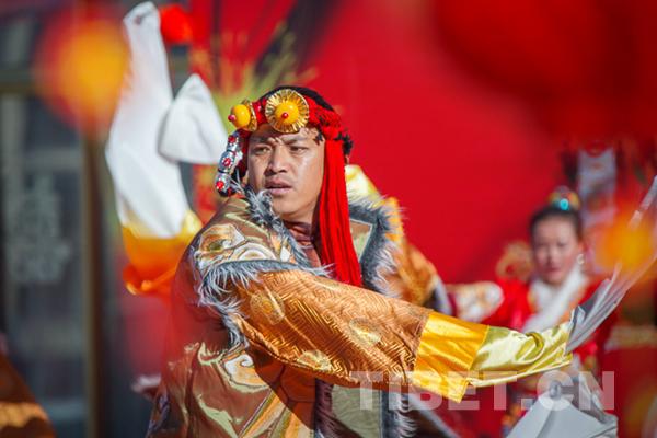 中國西藏網(wǎng)訊 2月8日上午,拉薩市城關(guān)區(qū)藏?zé)嵘鐓^(qū)張燈結(jié)彩,彩旗飄揚(yáng),2018年“我們的節(jié)日o春節(jié)藏歷新年”主題聯(lián)歡活動拉開帷幕,來自城關(guān)區(qū)的雪巴拉姆民間藝術(shù)團(tuán)、娘熱拉姆民間藝術(shù)團(tuán)、阿壩林老年文藝隊的演員們?yōu)楦髯迦罕妿砹艘粓鲆暵犑⒀纭?/p>
