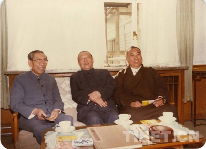 圖為1987年初,十世班禪大師與習(xí)仲勛、阿沛o阿旺晉美商議援助西藏發(fā)展基金會(huì)籌備事宜。
