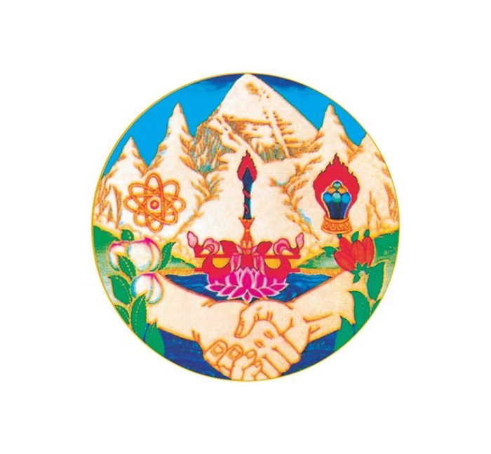 圖為十世班禪大師親自設(shè)計(jì)并請(qǐng)畫(huà)家洛松向秋付諸筆端的援助西藏發(fā)展基金會(huì)徽標(biāo)。