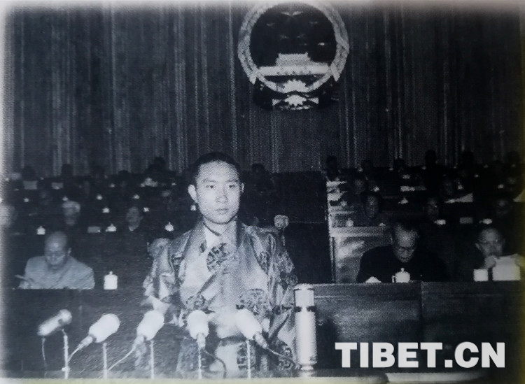 圖為1959年4月,十世班禪大師在第二屆全國(guó)人民代表大會(huì)第一次會(huì)議上發(fā)言。(圖片翻拍自《第十世班禪額爾德尼評(píng)傳》)
