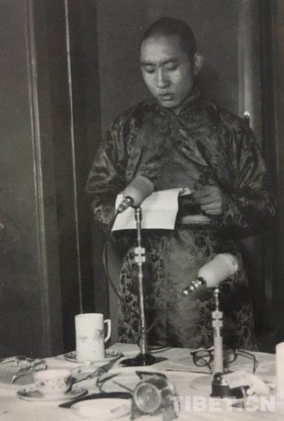 圖為1955年3月9日 十世班禪大師在國務(wù)院全體會(huì)議第七次會(huì)議上發(fā)言。翻拍自《班禪額爾德尼評(píng)傳》