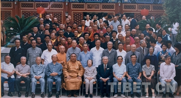 圖為參加中國藏語系高級(jí)佛學(xué)院成立大會(huì)的全體領(lǐng)導(dǎo)與師生合影。