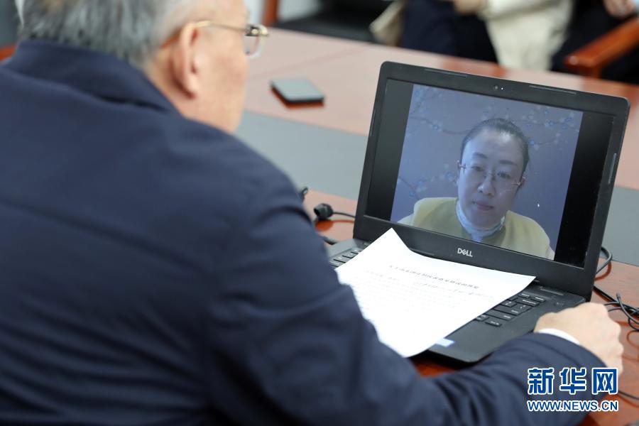 3月7日,全國(guó)人大代表、山東省泰安市農(nóng)科院食用菌研究所所長(zhǎng)孔怡(屏幕畫(huà)面中)同農(nóng)業(yè)農(nóng)村部種業(yè)管理司副司長(zhǎng)孫好勤在北京進(jìn)行網(wǎng)絡(luò)視頻連線。這是一次不尋常的兩會(huì)“速遞”:3月5日代表提出建議,3月6日建議經(jīng)國(guó)務(wù)院辦公廳轉(zhuǎn)到農(nóng)業(yè)農(nóng)村部,3月7日中午就實(shí)現(xiàn)了部門(mén)與代表的“云對(duì)話”。新華社記者 李木子 攝