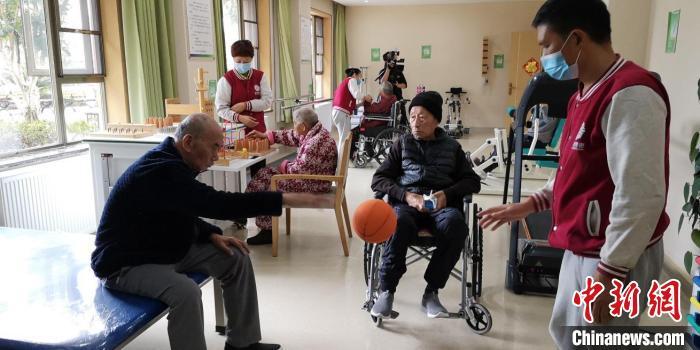資料圖:護工正在和老年人進行康復(fù)訓練。 貴州省民政廳供圖