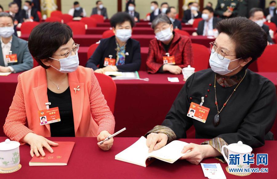 3月6日,王宜(右)委員和肖新月委員在全國政協(xié)十三屆四次會議醫(yī)藥衛(wèi)生界、教育界委員聯(lián)組會前交流。新華社記者 黃敬文 攝