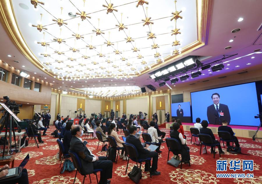 3月10日,全國(guó)政協(xié)十三屆四次會(huì)議第三場(chǎng)“委員通道”采訪活動(dòng)在北京人民大會(huì)堂新聞發(fā)布廳舉行。這是全國(guó)政協(xié)委員陳雨露通過網(wǎng)絡(luò)視頻方式接受媒體采訪。新華社記者 李賀 攝