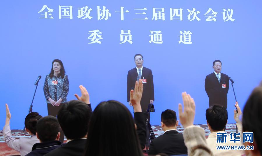 3月10日,全國(guó)政協(xié)十三屆四次會(huì)議第三場(chǎng)“委員通道”采訪活動(dòng)在北京人民大會(huì)堂新聞發(fā)布廳舉行。這是記者在分會(huì)場(chǎng)通過網(wǎng)絡(luò)視頻方式提問。新華社記者 李木子 攝
