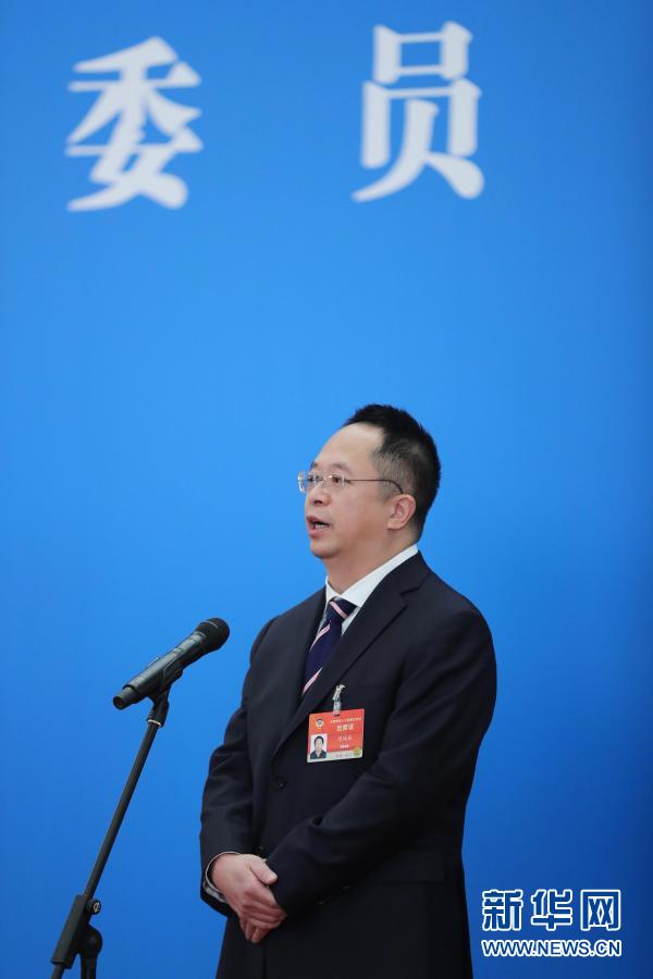3月4日,全國(guó)政協(xié)十三屆四次會(huì)議第一場(chǎng)“委員通道”采訪活動(dòng)在北京人民大會(huì)堂新聞發(fā)布廳舉行。這是全國(guó)政協(xié)委員朱征夫通過(guò)網(wǎng)絡(luò)視頻方式接受媒體采訪。新華社記者 李賀 攝