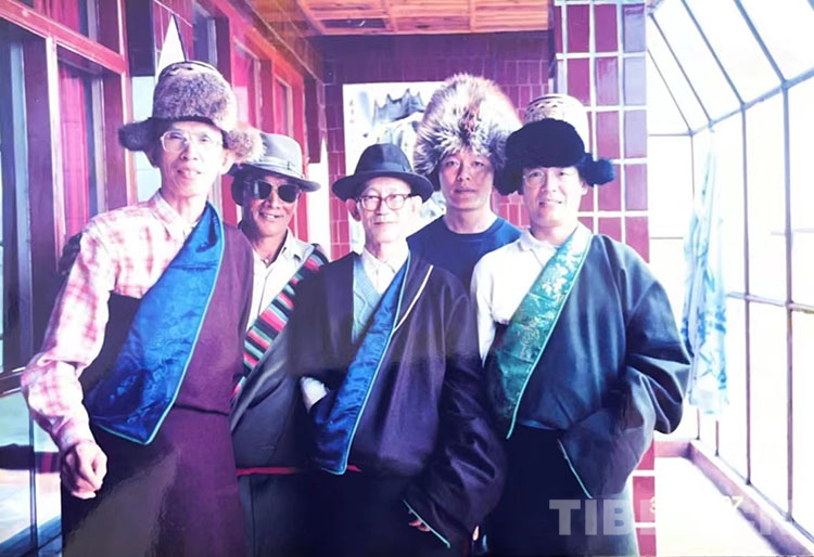 圖為1997年8月,海峽兩岸藏學研討會后,兩岸藏學學人在青海黃南州河南蒙旗考察,陳慶英先生(中)和與會部分學者合影
