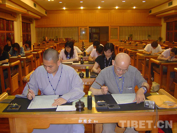 圖為2004年陳慶英先生在臺灣講學期間,于佛光山體驗抄經(jīng)