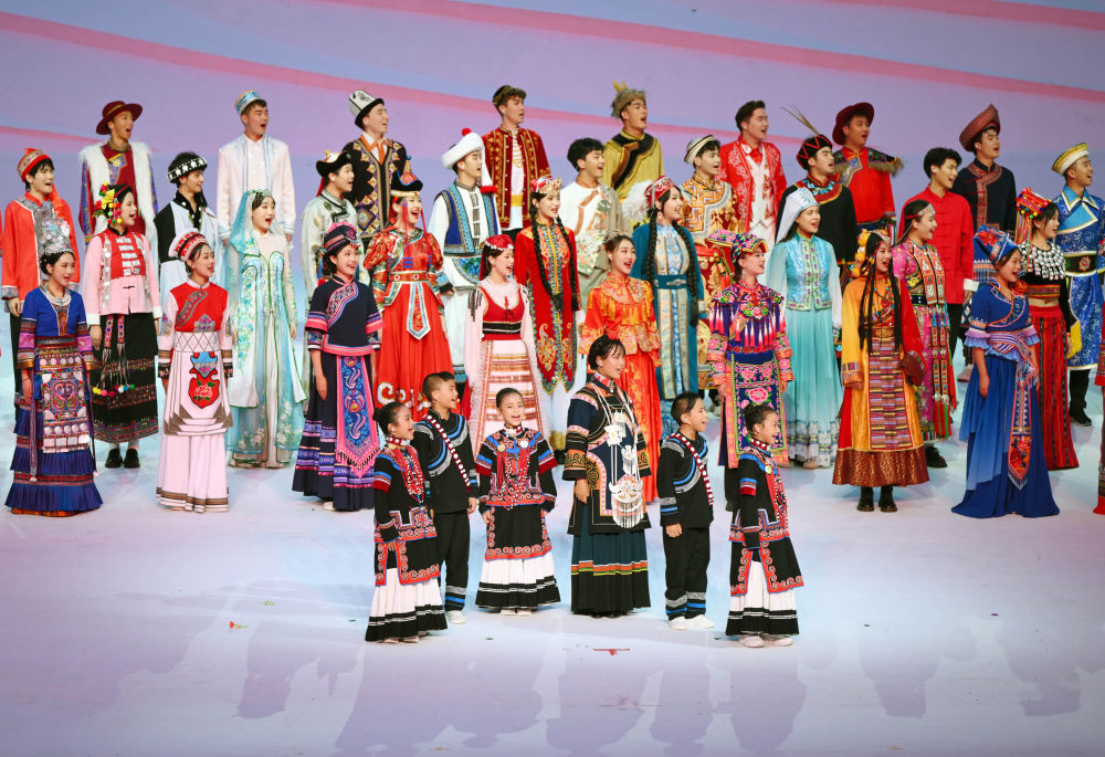 7月28日,來自四川涼山彝族自治州的孩子們在成都大運會開幕式上歌唱。新華社記者 陳澤國 攝