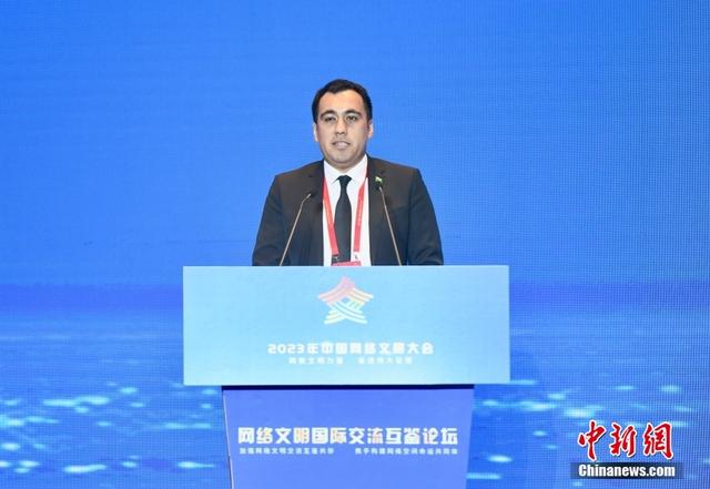 7月18日,2023年中國網(wǎng)絡(luò)文明大會(huì)網(wǎng)絡(luò)文明國際交流互鑒論壇在廈門舉辦。中外嘉賓圍繞加強(qiáng)網(wǎng)絡(luò)文明交流、互鑒、共存等話題展開探討。圖為中國石油大學(xué)(北京)土庫曼斯坦籍來華留學(xué)生若賀曼作主題演講。中新社記者 王東明 攝