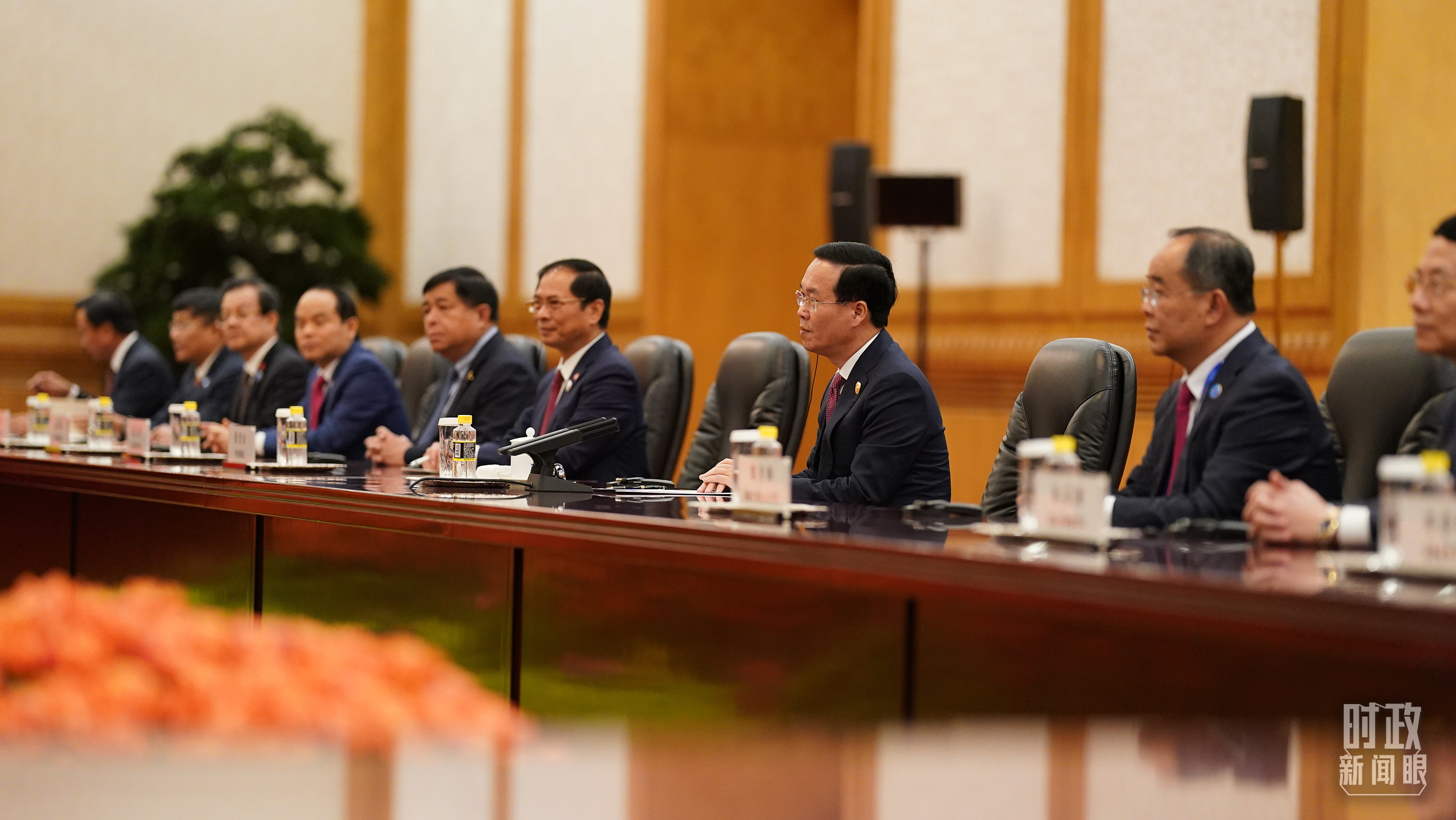 中越兩國領(lǐng)導(dǎo)人會見現(xiàn)場。(總臺國廣記者李晉拍攝)